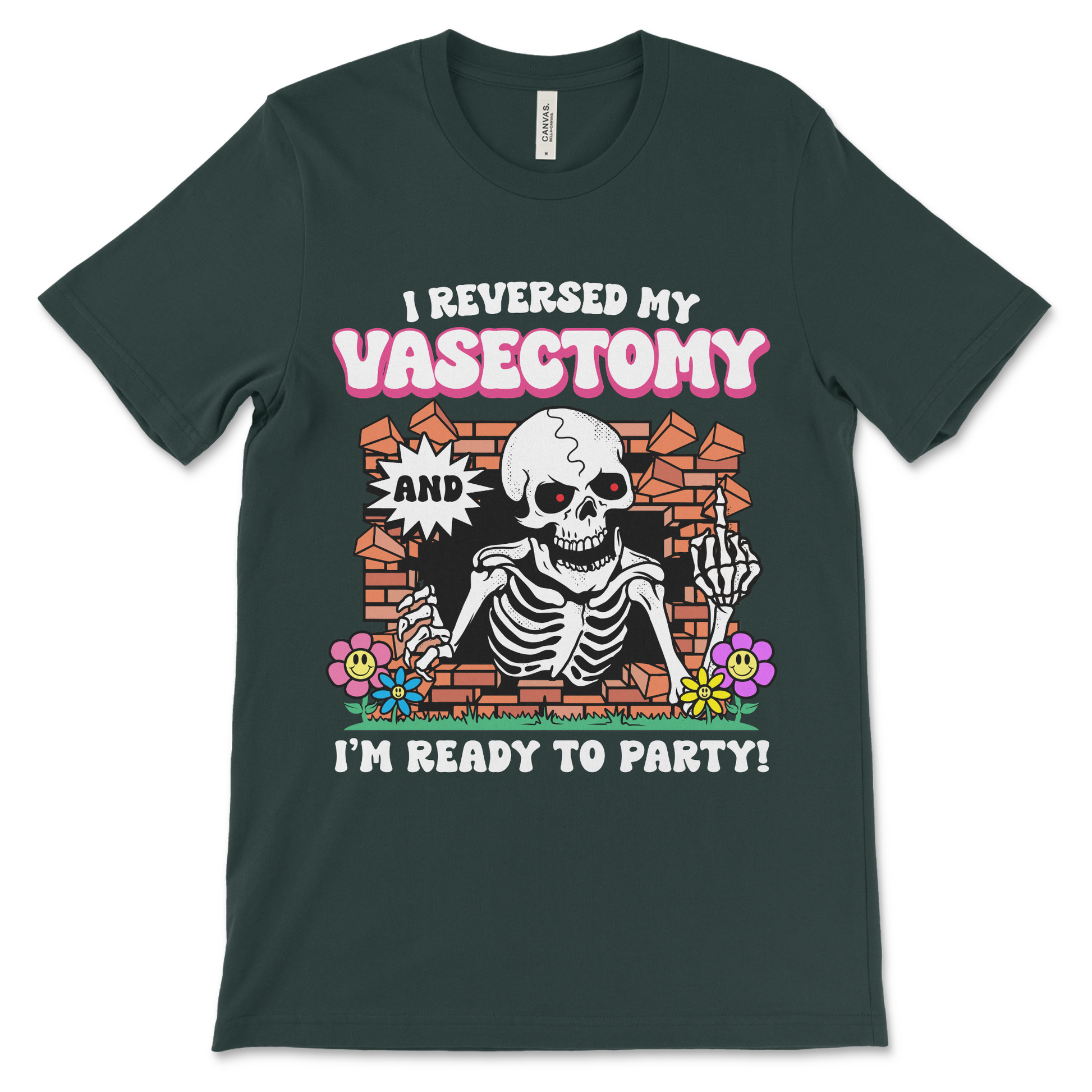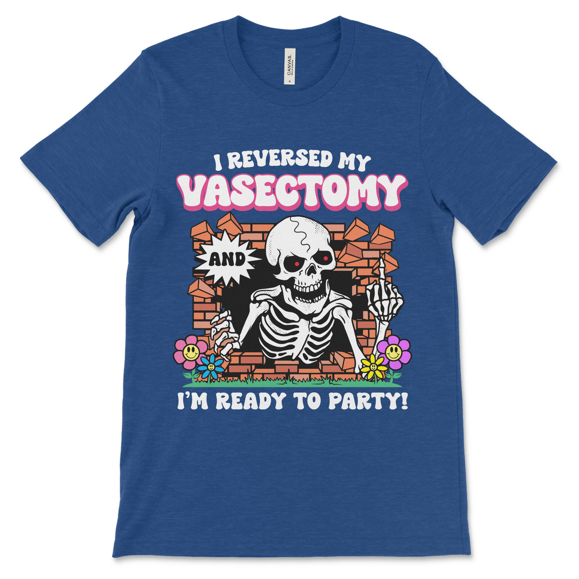 The “I Reversed My Vasectomy and I’m Ready to Party” shirt is pure irony — ridiculous, oddly specific, and designed for people who enjoy wearing something that makes zero sense. It’s filthy, vulgar, and just the right amount of obscene, making it a go-to for inappropriate t-shirt exchanges or moments when you want to make everyone in the room uncomfortable.