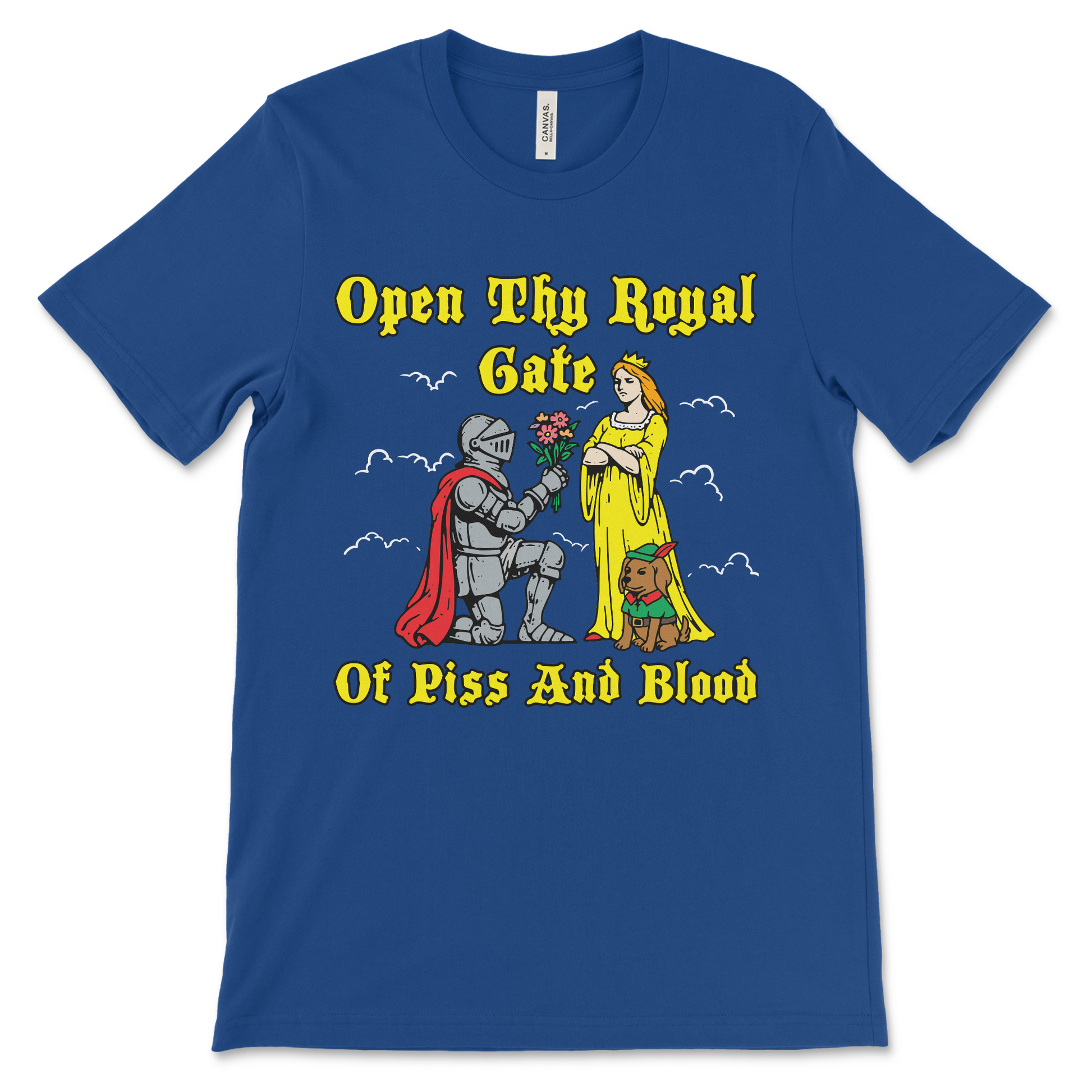 The Open Thy Royal Gate of Piss and Blood shirt is medieval nonsense at its finest. Part funny knight shirt, part medieval meme, it mixes dirty humor with over-the-top drama for a tee that’s as stupid as it is hilarious. If dark humor, raunchy jokes, and sarcastic medieval vibes are your thing, this funny medieval times shirt is a must-have.